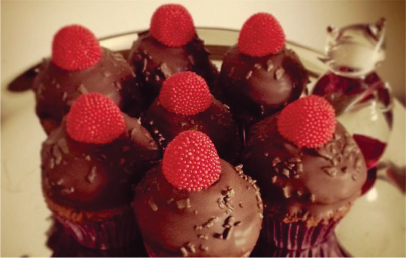 | Copinho de chocolate com ganache cremosa de chocolate enfeitada com cereja com cabinho. | ||