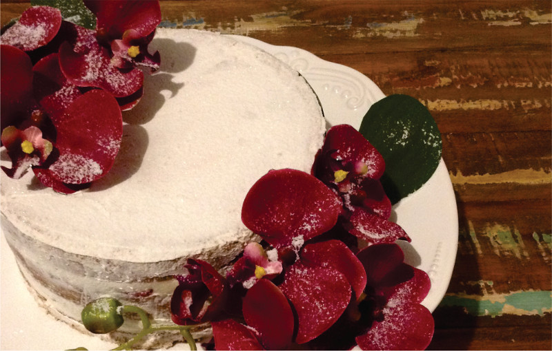 | Bolo pelado com massa molhadinha, recheio de creme de côco ou leite ninho, coberto com açúcar gelado e arranjo de flores permanentes. | |||