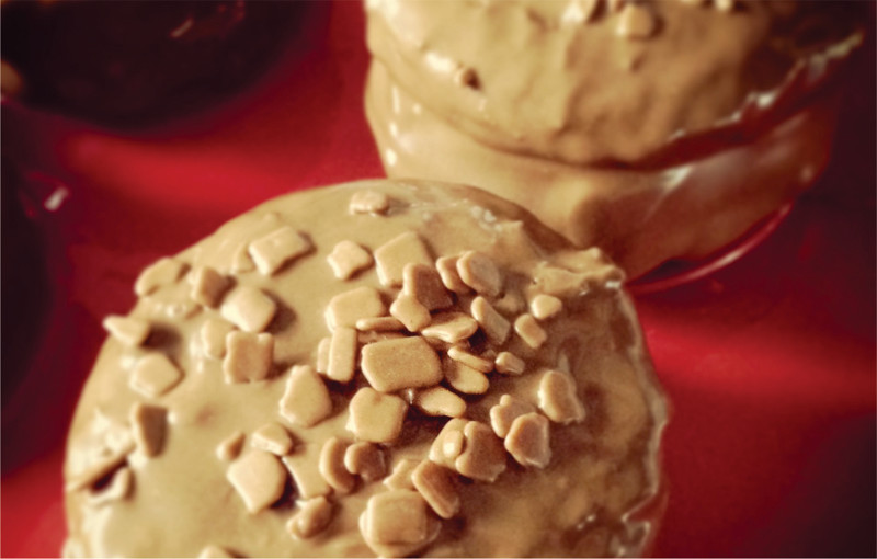 | Brigadeiro de amendoim caramelizado e envolvido por pedacinhos de amendoim torrado. | ||